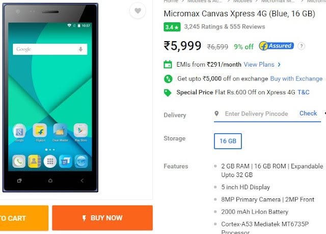 Flipkart Snapdeal Amazon Discount Sale Offer Micromax Canvas Xpress